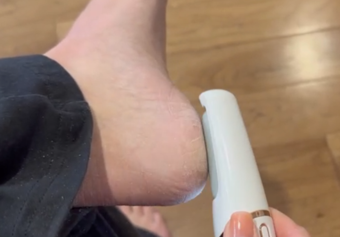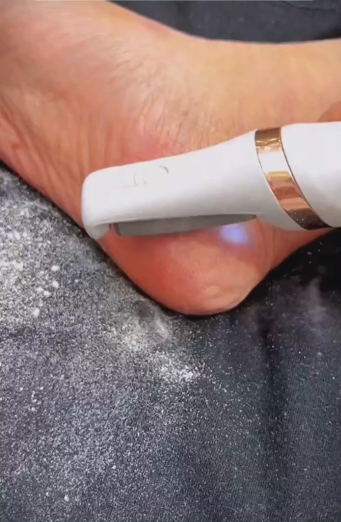 ⚡Turn on the device and gently roll it over dry, rough skin👣. Use light pressure for best results. Clean the roller head after each use and recharge as needed.